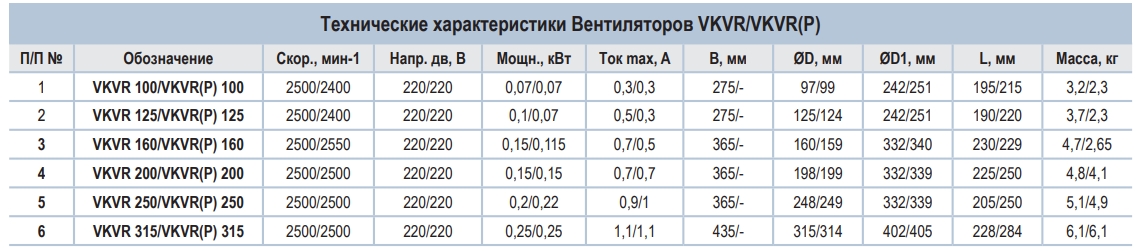 Характеристики VKVR 315